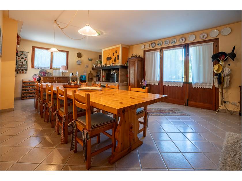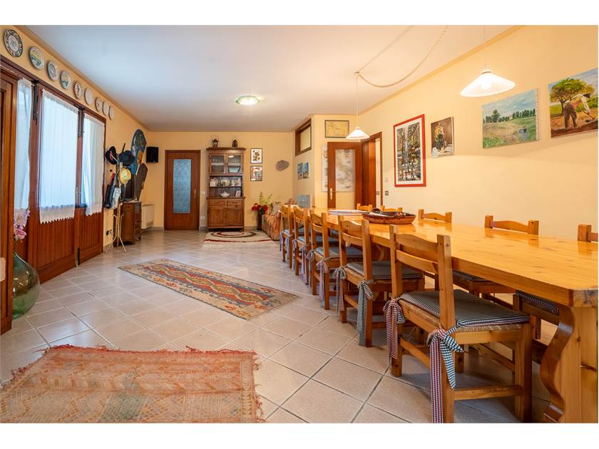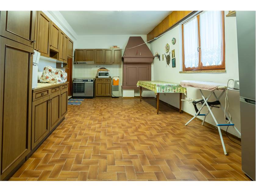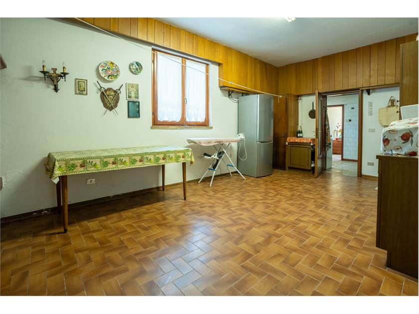 Gli spazi interni accolgono una cucina di grandi dimensioni, ideale per la vita quotidiana e per ricevere, un salone generoso e luminoso, la cucina, due camere da letto, un bagno, oltre a cantina e ripostiglio, ma la notevole metratura consente, con una semplice ridistribuzione, la realizzazione di una terza camera, rendendo la casa estremamente versatile e adatta anche a nuclei familiari più numerosi o a chi necessita di uno spazio studio.